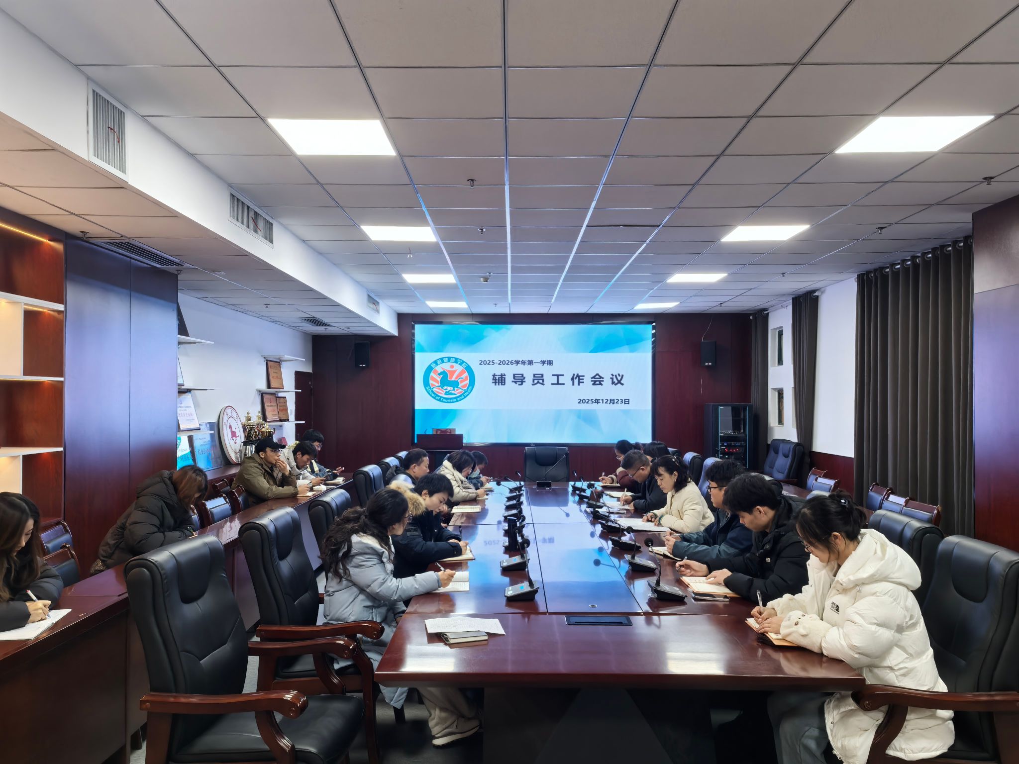 为扎实推进期末各项工作有序开展,确保师生度过一个安全、平稳的期末阶段,12月23日中午,旅游健康学院在学院会议室召开学生安全工作会议。学院党总支书记杨锐、全体辅导员参加会议,会议由学院党总支副书记刘燕主持。