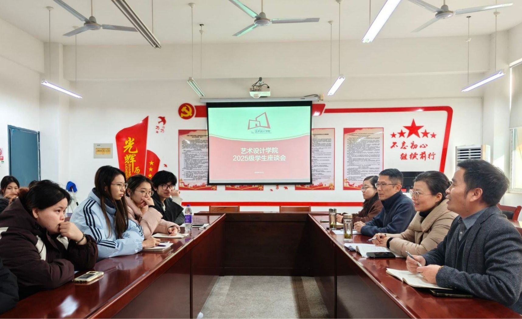 为深入了解学生的学习状况以及校园生活,艺术设计学院1月7日召开 24、25 级学生座谈会。艺术设计学院院长魏芬、党总支副书记张乐、副院长邱志斌、教务科科长张翌以及来自各班级的学生代表参加本次座谈会。