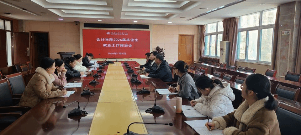 为扎实推进学院2026届毕业生就业工作,全面分析就业形势、精准对接下一阶段任务,会计学院于1月8日中午在明德楼学院会议室召开2026届毕业生就业工作推进会。学院党总支书记赵艳、副书记李峰及毕业班辅导员参与。