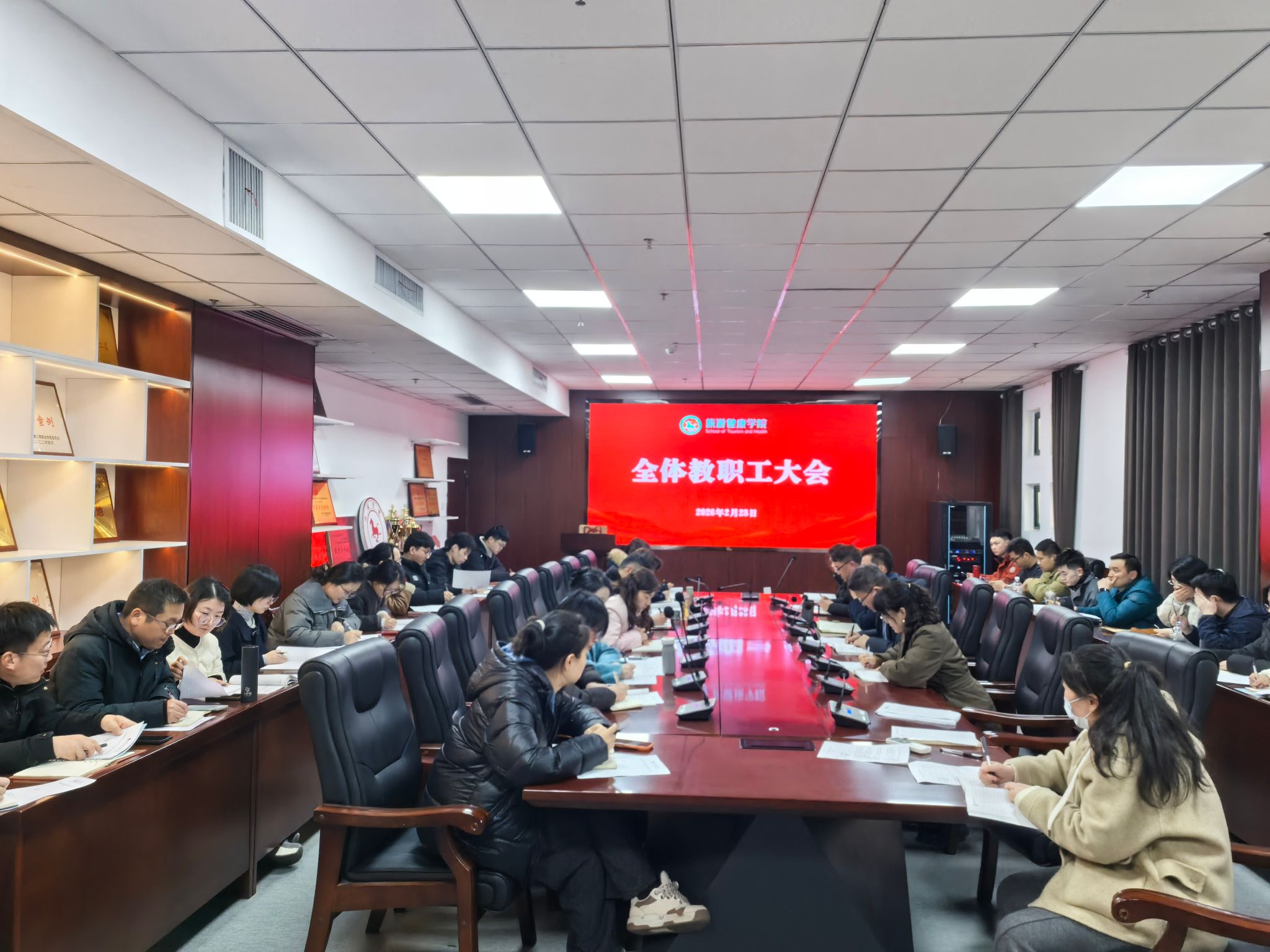 2月28日,旅游健康学院在学院会议室召开新学期全体教职工大会,全面总结过往工作成效,系统统筹新学期重点任务,进一步统一思想、凝聚共识、鼓足干劲,为学院高质量发展擘画崭新蓝图。学院全体教职工参加会议,会议由学院办公室主任孙群主持。