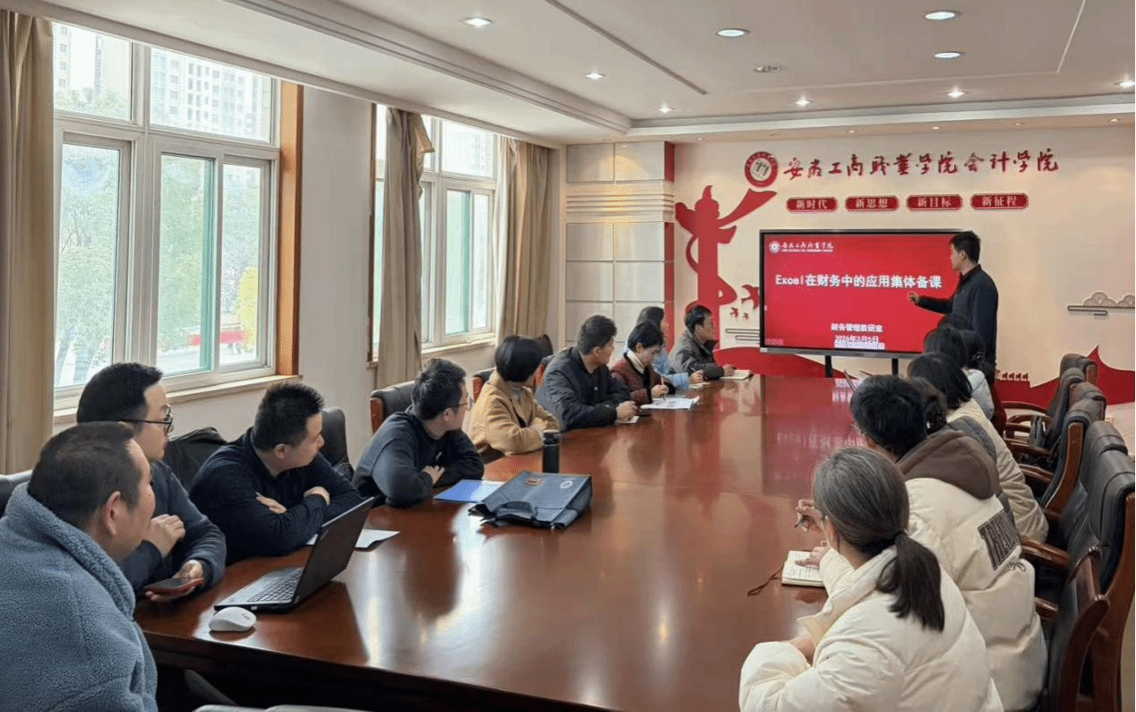 为提升课程建设质量,会计学院大数据与财务管理教研室于2026年3月5日组织召开《Excel在财务中的应用》课程集体备课会。会计学院院长张颖出席会议,课程负责人谷小城、全体课程授课教师参加研讨。
