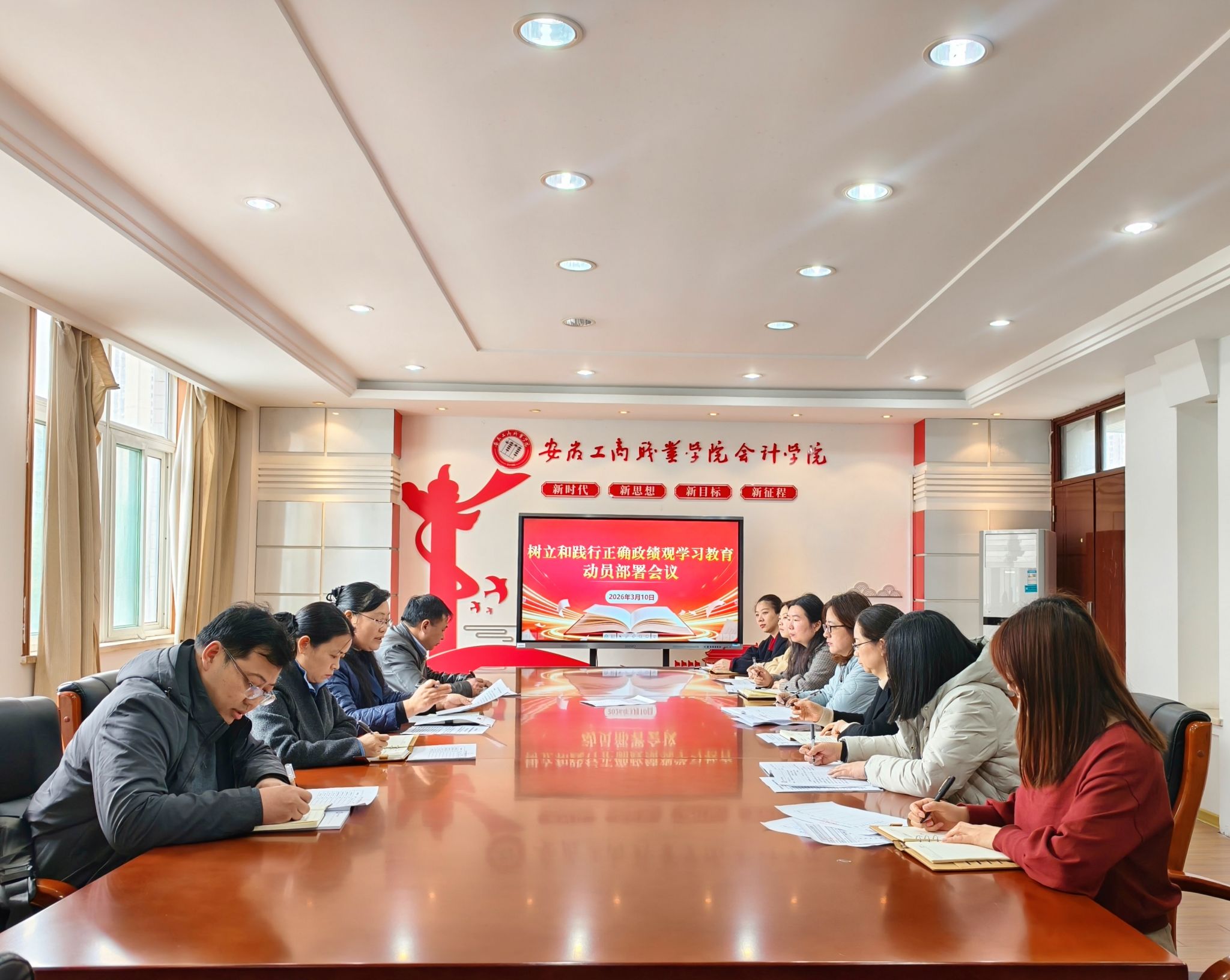 3月10日,会计学院党总支在明德楼党建会议室召开树立和践行正确政绩观学习教育动员部署会。学院党总支书记赵艳主持会议,党总支副书记李峰、副院长费玄淑及全体党支部书记参加会议。