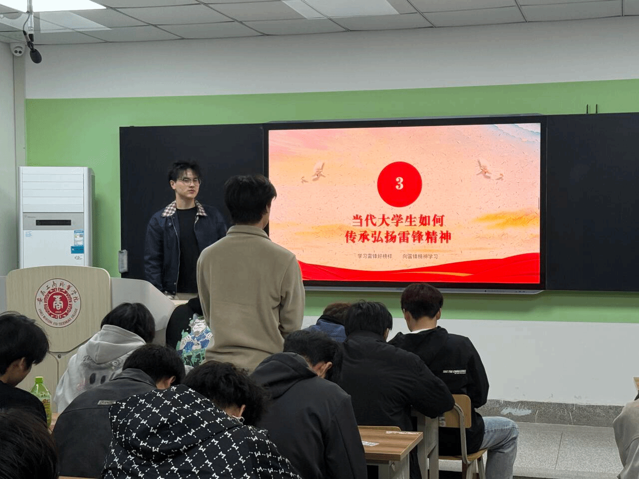 与此同时,学院各班级以团支部为单位,依托班级活动室、自习室等场地,有序开展主题观影与读书分享活动。各班同学共同观看雷锋精神主题教育视频,重温雷锋同志的成长历程与奉献故事;随后分组共读雷锋著作,在文字中体悟“甘做螺丝钉”的坚守、“助人为乐”的初心。