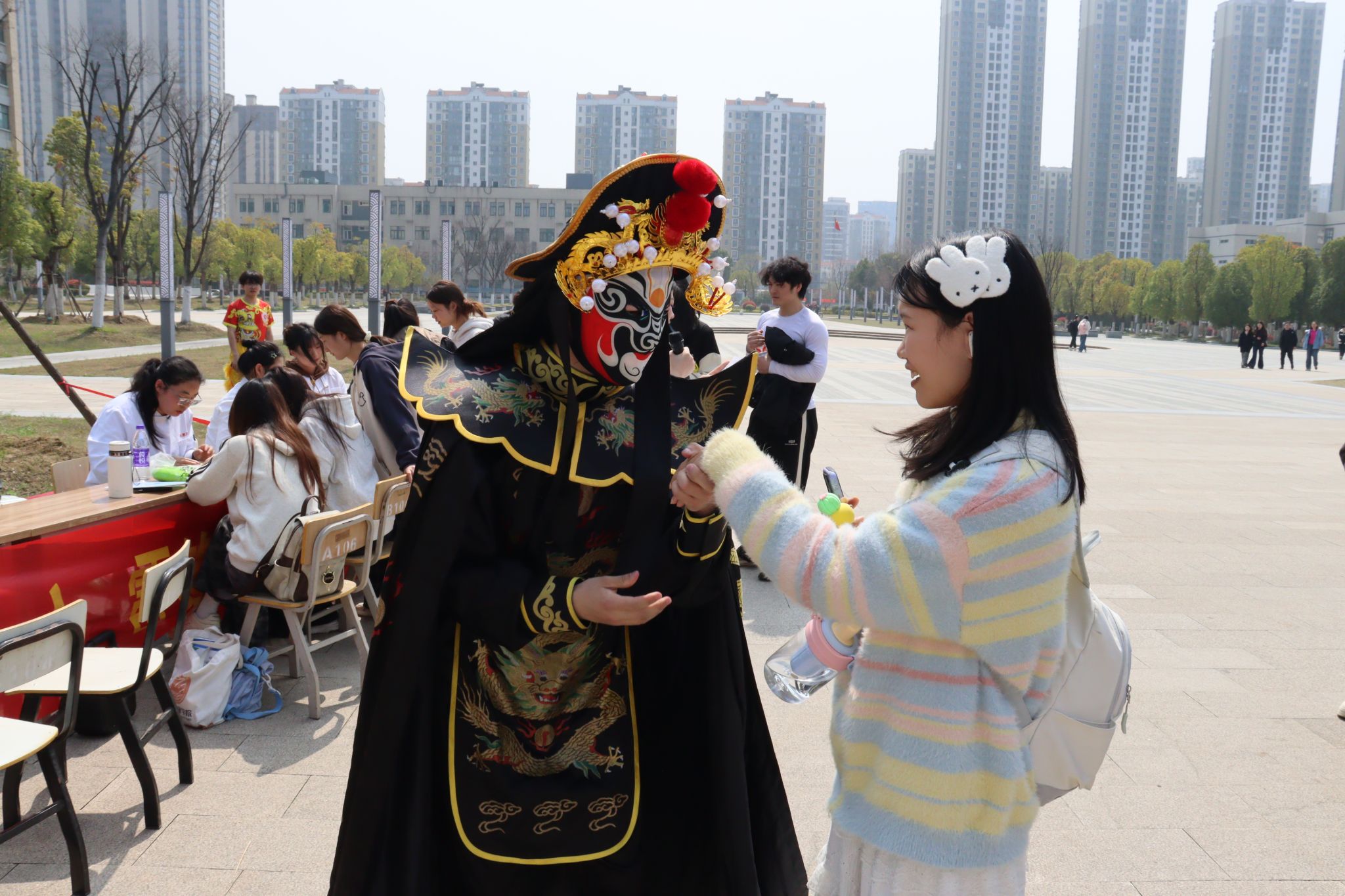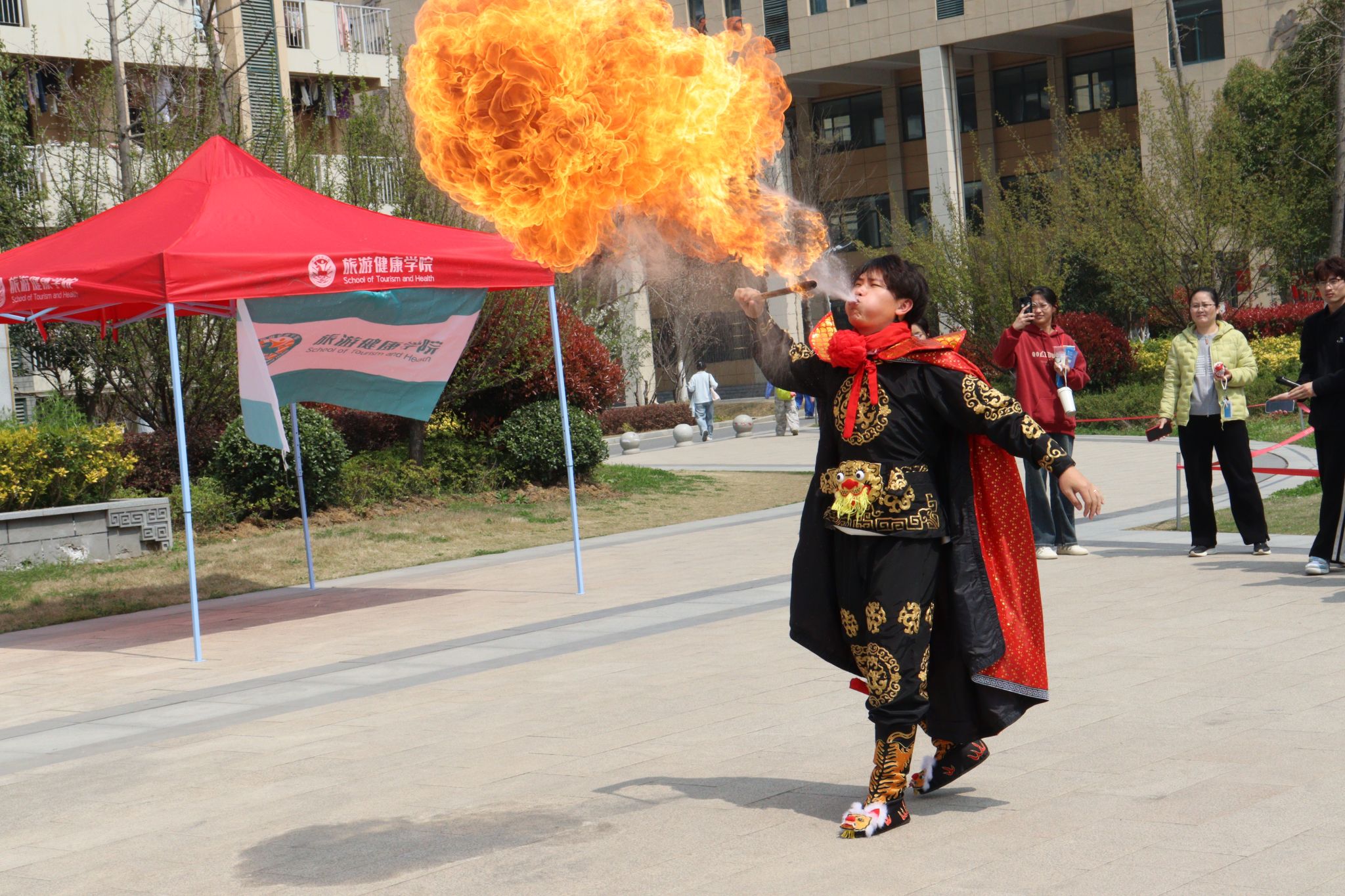 为弘扬中华优秀传统文化,践行新时代雷锋精神,深入推进“三全育人综合改革”,打造特色鲜明的育人实践平台,3月25日中午,旅游健康学院在双凤校区商韵广场举办了“传统文化浸人心,雷锋精神伴我行”主题活动。活动通过民俗舞狮、国粹变脸、传统茶艺、非遗面塑四大非遗展演与互动体验,吸引千余名师生参与,将文化传承与雷锋精神深度融合,打造了一场沉浸式文化实践课堂。