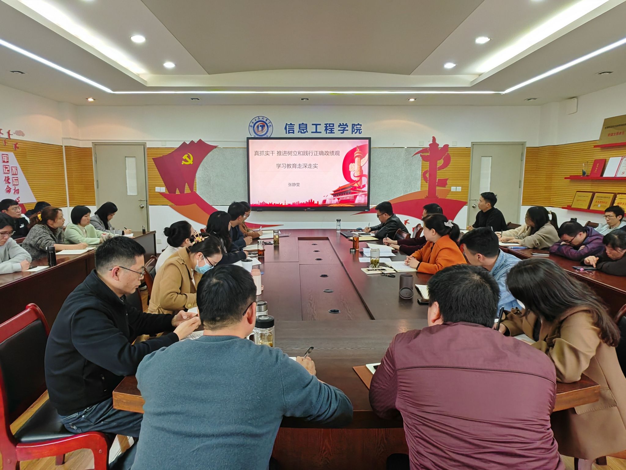 4月1日下午,信息工程学院党总支在党员活动室召开4月份教职工政治理论学习会议,会议由党总支书记张静雯主持,全体教职工参加会议。