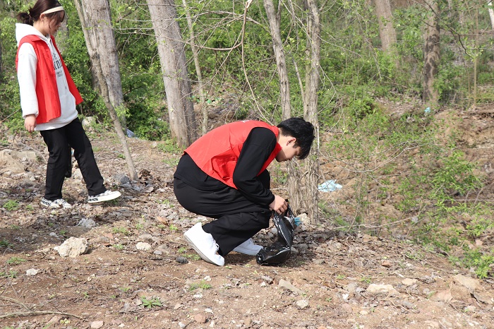 进入保护区后,同学们沿着水源保护区的小道,捡拾着残留的垃圾,并分类装入垃圾袋中。大家不怕脏、不怕苦、不怕累,用自己的实际行动践行着一名青年志愿者的责任,同学们的行为获得了路人的一致好评,形成了一道最美的风景,展示了我院大学生昂扬向上的青春风貌。活动持续了近两个小时,同学们将捡拾的垃圾统一装入垃圾袋进行集中处理。