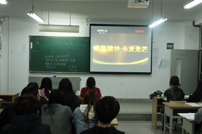 为了引导团员青年积极传承雷锋精神,营造浓厚的学雷锋树新风氛围,推进培育和践行社会主义核心价值观,学院组织各班级观看了影片《离开雷锋的日子》、《永恒的雷锋》等影片以及《文明之光、志愿中国》学雷锋志愿服务主题宣传特别节目。