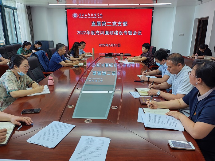 6月10日下午,直属二支部在综合楼四号会议室召开专题会,贯彻落实2022年度党风廉政建设任务,支部全体党员参加会议,会议由支部宣传委员葛成飞主持。