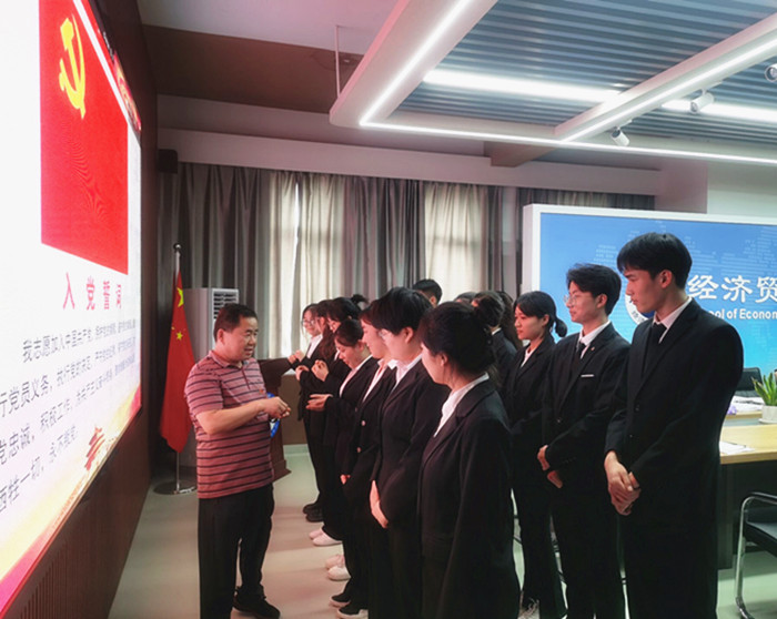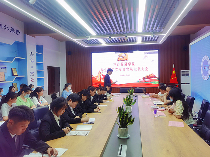 6月10日,经济贸易学院学生第一党支部、第二党支部分别在四楼、五楼会议室召开预备党员接收大会,会议分别由学生第一党支部书记邬金和第二党支部书记陈夺主持,全体正式党员参加会议。