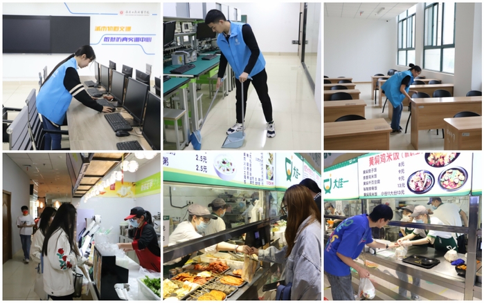 5月10日至12日,应用工程学院组织开展教学场所的清洁劳动实践活动和食堂服务人员的现场服务实践活动,多名同学深入实训室、教室及食堂,参加校内劳动体验和服务性劳动体验,进一步体验到保洁人员和食堂服务人员的辛苦,同时也体会了奉献的真谛。
