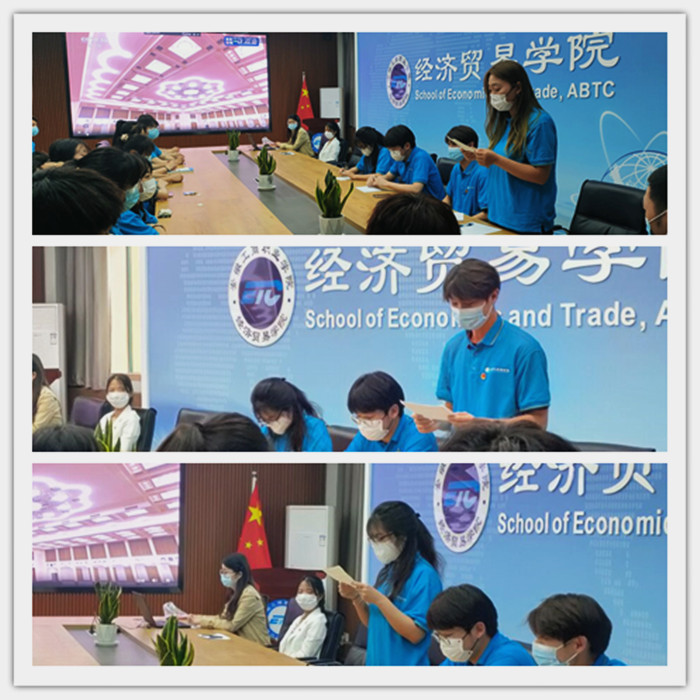 经济贸易学院团总支副书记朱清涟说:今年是共青团建团100周年, 100年栉风沐雨,100年前仆后继,共青团始终坚定不移的跟党走,是党的得力助手和可靠后备军,党有号召,团有行动,党的奋斗主题就是团的行动指南。作为一名教育工作者,我既要深刻认识党和国家当前的历史方位、伟大征程,更要清醒地认识到当前和今后一段时期高等教育发展所面临的新形势、新机遇和新挑战。我们要细学深悟习近平总书记的重要讲话精神,汲取营养、启迪智慧,努力把学习成果转化为推动工作、指导实践的强大动力,坚守初心,恪以匠心,辅以仁心,用实际行动浇灌出新时代的青春之花。