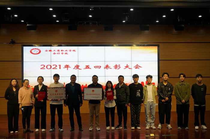 五四精神承薪火,奋进征程再启航。在庆祝中国共产主义青年团成立100周年之际,为充分发挥安徽工商职业学院会计学院青年典型示范引领作用,激励安工商青年踔厉奋发、笃行不怠,以优异成绩喜迎党的二十大胜利召开。5月11日,会计学院团总支在学术报告厅举行了2021年度“五四”表彰大会。会计学院党总支副书记杨锐、团总支书记陈嵊、学生第一党支部书记余想花、学生第二党支部书记宋静娴、校团委指导教师杨磊以及校学生会、校青协、校广播站代表应邀参加此次表彰大会。按疫情防控要求,本次大会采取线下录制,线上播放的形式进行。