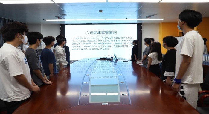 最后,20城轨机电二班学生尹梦雪带领参会人员进行了心理健康宣誓,号召同学们勇于面对人生挑战,勇敢前行!(撰稿:邓夏夏 审核:丁浩)