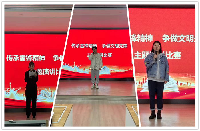 主题演讲比赛 3月25日,学院开展“传承雷锋精神,争做文明先锋”主题演讲比赛,参赛选手们用生动的语言从不同的角度,阐述了自己对雷锋精神的理解与体会,并引用身边的真人真事来表达向雷锋同志的致敬。用一个个生动的事迹、一番番感慨陈词,号召着我院学子向雷锋同志看齐——志存高远、无私奉献,树立远大理想;誓将雷锋精神践行于日常学习和生活中,做新时代的弘扬者。