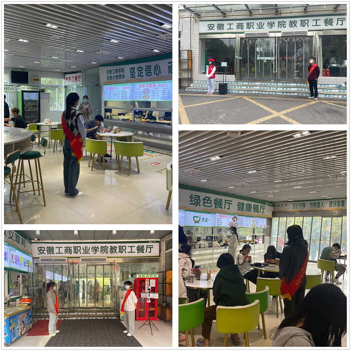 文明督导行动 3月30日,为进一步配合学校疫情防控工作,学院组织志愿者在学校食堂开展文明就餐督导行动,志愿者们佩戴绶带,针对学生就餐期间的个人自我防护、文明就餐、餐盘回收等情况向同学们进行宣传提醒,通过实际志愿行动促使学生养成良好的行为习惯。