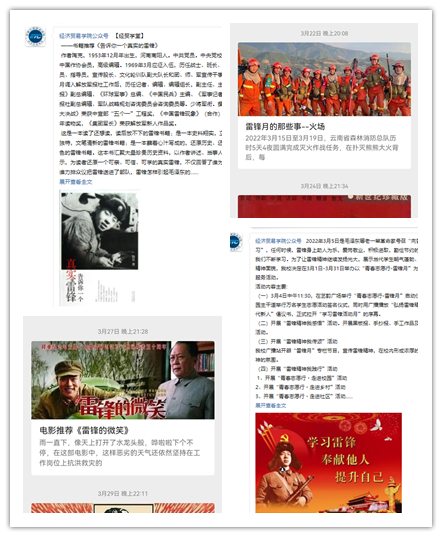 习近平总书记指出,“雷锋是时代的楷模,雷锋精神是永恒的。实现中华民族伟大复兴,需要世界第一大赌场,澳门金沙城中心时代楷模。”为回应总书记对青年人的期盼。 3月,经济贸易学院掀起一股“学雷锋”热潮,同学们积极践行雷锋精神,传播志愿服务理念,把一场场温暖的活动送到同学身边,使学雷锋活动深入人心,让雷锋精神入心入脑,形成常态,常做常新。