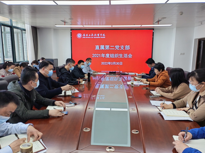 3月30日下午,直属第二党支部在综合楼4号会议室召开2021年度组织生活会,会议由党支部书记何芳主持,支部全体党员参会。