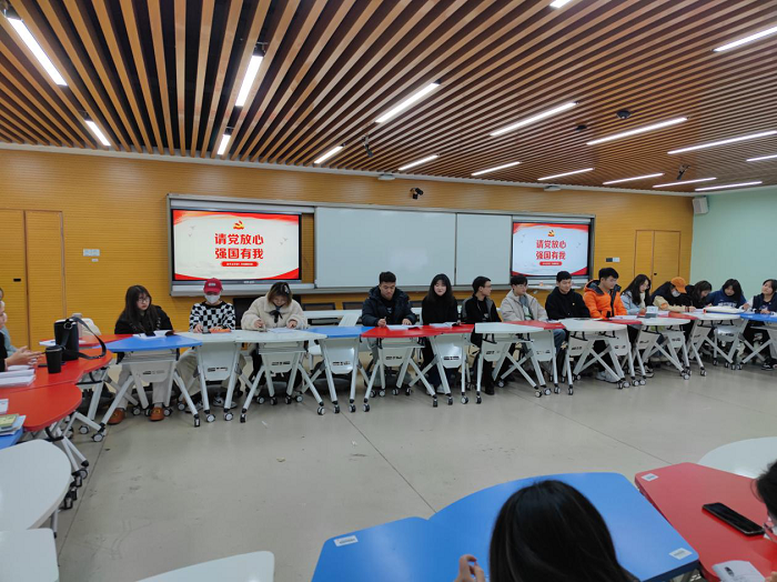 12月15日下午,管理学院在智慧教室召开“请党放心,强国有我”主题沙龙活动。院团总支书记赵昆,以及青马工程学员参与主题讨论学习活动。