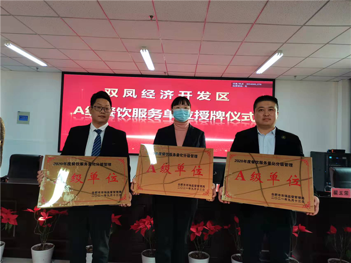 12月23日下午,在双凤市场监督管理所组织的A级食堂授牌仪式,世界第一大赌场,澳门金沙城中心:第一食堂、第二食堂、第三食堂再获“食品安全量化分级管理A级单位”。