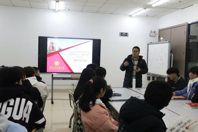 为学习宣传贯彻习近平总书记在中国共产党建党一百周年大会上的重要讲话精神,教育引导青年学子“学党史、强信念、跟党走”,应用工程学院于12月16日下午在实训楼202开展了“青马”培训主题沙龙活动。活动由学院团总支书记杨东主持,全体“青马”培训学员参加此次活动。