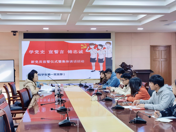 根据《党员发展工作细则》要求,为使上级党总支全面了解预备党员的思想情况,保证发展党员质量,并对新发展党员进一步帮助教育,会计学院学生第一党支部于2021年11月25日、12月1日下午在明德楼二号会议室开展了新党员集体谈话活动,党总支宣传委员周维出席本次座谈会,活动由支部书记余想花主持。