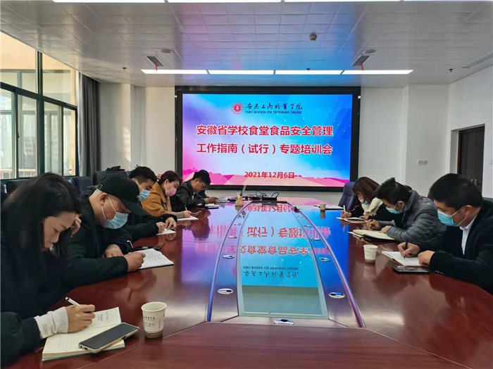 近日,安徽省教育印发了《安徽省学校食堂食品安全管理工作指南(试行)》。为进行步加强学校食堂食品安全日常监管,12月6日上午后勤服务中心组织召开学习《安徽省学校食堂食品安全管理工作指南(试行)》 专题培训。后勤服务中心副主任陈松做专题辅导,后勤服务中心相关人员、各食堂经理及各食堂骨干人员参加了培训会。