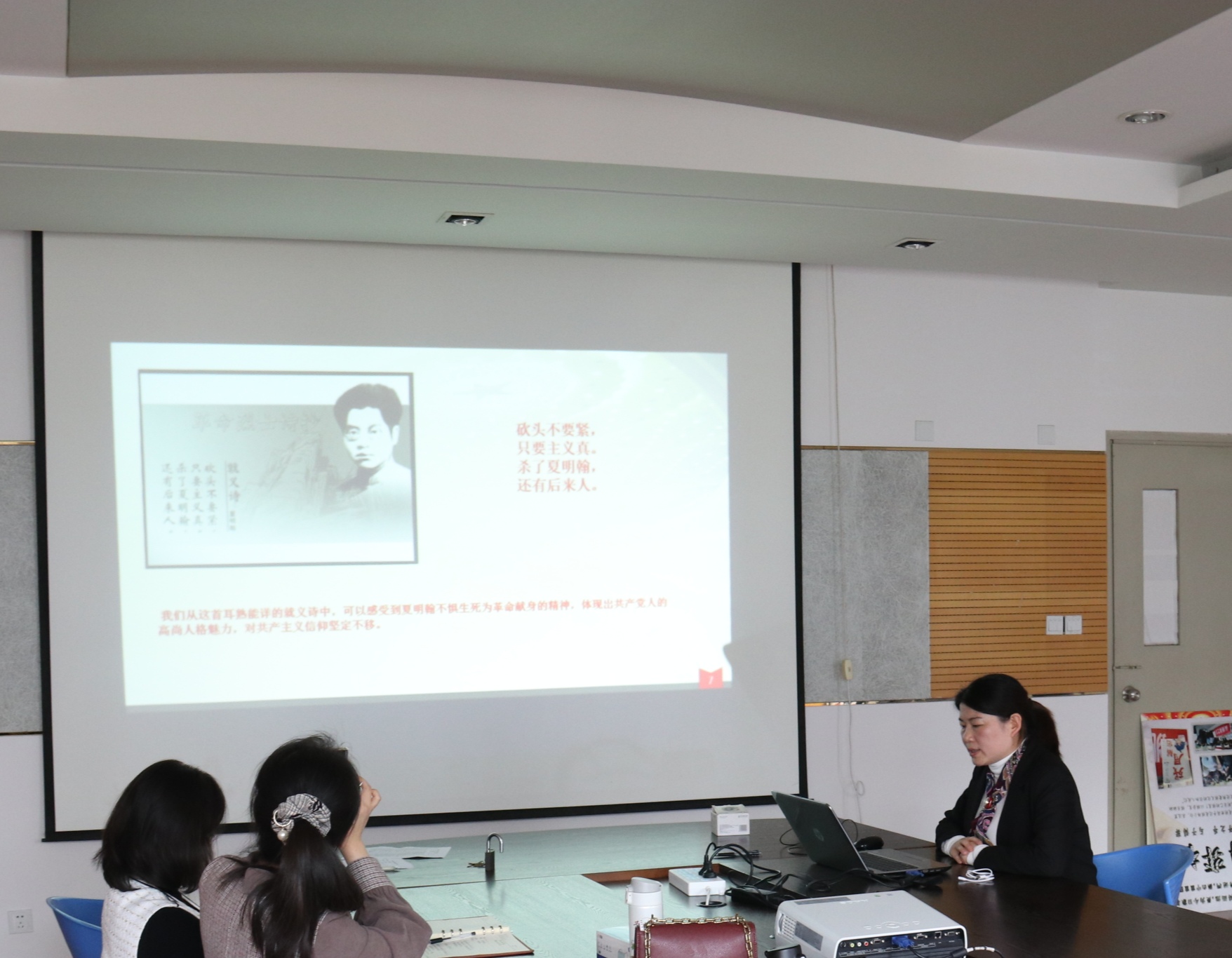 陈翠红以《学党史、敬模范、办实事》为主题,并结合个人工作经验和体会,从李大钊、夏明翰等优秀共产党的先进事例引入,通过时代楷模,七一勋章获得者张桂梅的感人事迹,领悟到作为教育工作者,要传承为学生、为人民、为国家无私奉献的精神。张桂梅老师一直用实际行动兑现着自己“只要还有一口气,就要站在讲台上”的诺言,用不懈追求书写着不忘初心、牢记使命,为党和人民事业永远奋斗的绚丽人生。通过此次学习,广大教师进一步明确了立德树人根本任务,并表示,要向师德模范人物学习,积极发扬奋斗精神,强化使命担当,为党育人、为国育才。(撰稿:彭梦冉 审核:张静雯)