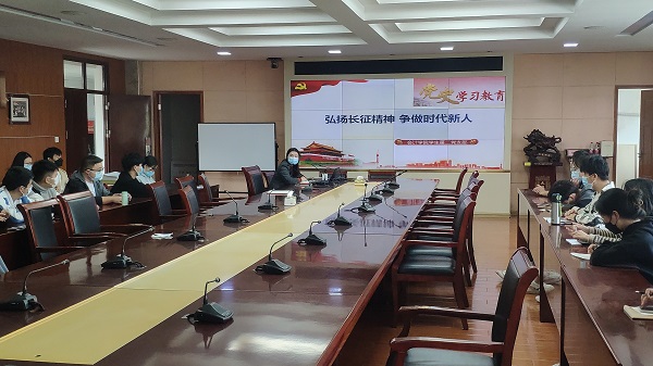 会上,宋静娴为全体支部党员上了一堂以“弘扬长征精神 争做时代新人”为主题的专题党课。宋静娴带领支部成员观看视频重温红军长征英雄诗篇,从那些惊心动魄、感人肺腑的故事中汲取前进的智慧和力量。在中国共产党人的精神谱系中,长征精神是最闪亮的火焰之一。习近平总书记深刻指出:“伟大长征精神,就是把全国人民和中华民族的根本利益看得高于一切,坚定革命的理想和信念,坚信正义事业必然胜利的精神;就是为了救国救民,不怕任何艰难险阻,不惜付出一切牺牲的精神;就是坚持独立自主、实事求是,一切从实际出发的精神;就是顾全大局、严守纪律、紧密团结的精神;就是紧紧依靠人民群众,同人民群众生死相依、患难与共、艰苦奋斗的精神。”