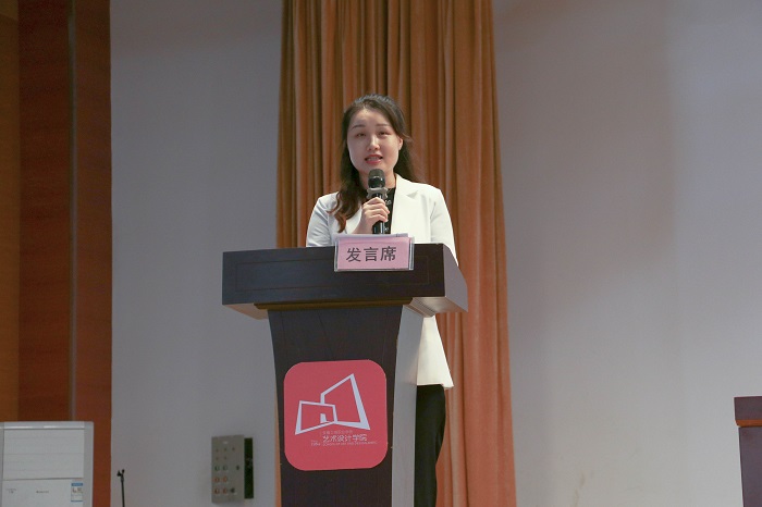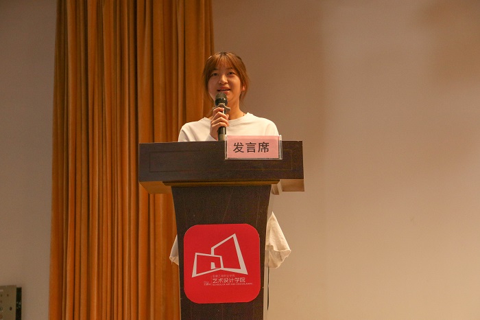 随后,广告艺术设计教研室周心懿老师代表全院师生表达了对新生的诚挚欢迎。她鼓励新生同学们要不断提升自身修养,不断严格要求自己,积极进取,勇于尝试,迎接挑战。