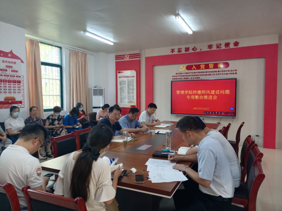 为进一步传达、落实全省教育系统教师思想政治和师德师风建设推进会议精神,管理学院9月22日下午召开全体教职工师德师风专项整治会议。校党委副书记、校长李雪应邀参会。