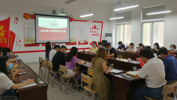7月30日下午,艺术设计学院在致知楼党员活动室召开全体教职工大会,动员部署学院暑期和下学期重点工作。会议由学院院长孔成主持,学院党总支副书记、副院长哈春浪等全体教职工参加会议。