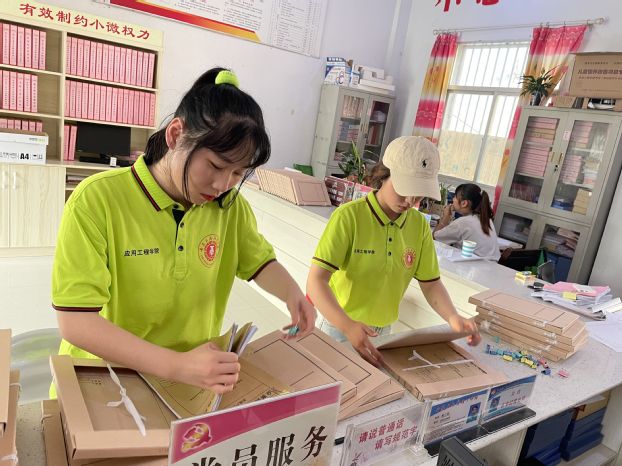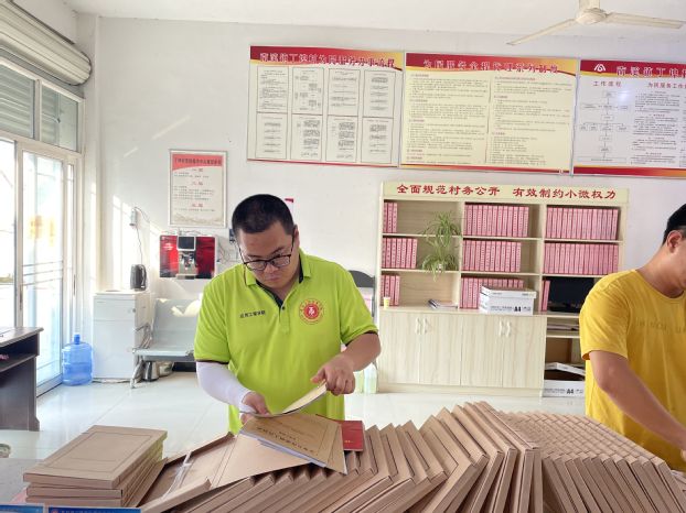 工作人员胡爱伦向队员们简单介绍了当地扶贫政策以及整理档案时需要注意的事项,并进行了示范。了解了详细步骤后,队员们开始进行分工合作,在整个过程中,虽然工作繁多且需精细,文件种类繁杂数量众多,实践团成员丝毫不退缩,按照档案的类别,队员们各司其职,相互之间配合默契,有条不紊的进行着工作。经过近两个小时的忙碌,队员们完成了丁埠村233户贫困户的档案整理工作。