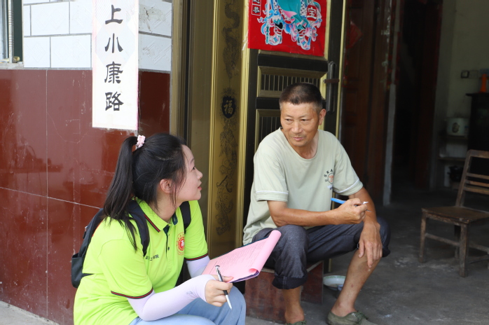 走出村委会,实践队的队员们深入到每家每户实际了解人民群众的生活水平与诉求,开展主题为“乡村振兴”问卷调研活动。
