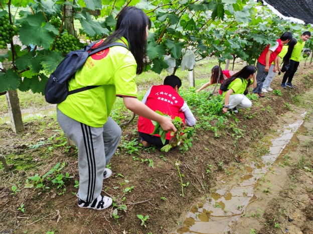 档案整理工作结束后,在得知丁埠村果兴果业葡萄园田间杂草增多,大大危害即将成熟的葡萄。队员们即刻决定出发葡萄园,帮助农户解决这一现实问题。