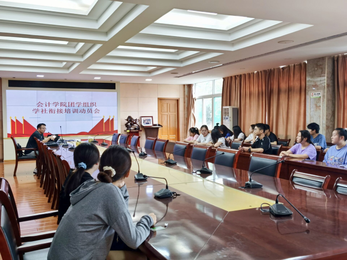 为更好完成2021年度毕业生学社衔接工作,6月25日中午,会计学院团总支于明德楼二号会议室举行了会计学院团学组织学社衔接培训动员会,会议由会计学院团总支副书记陈嵊主持。