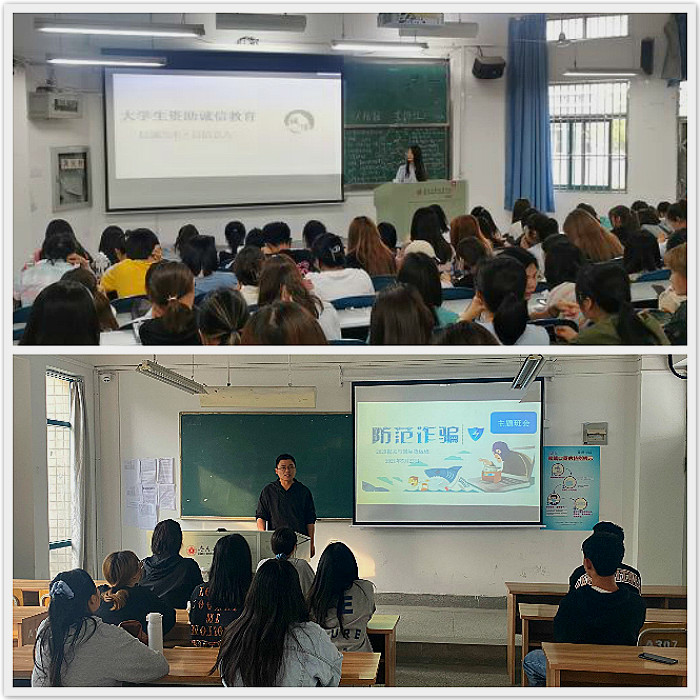 5月17日至20日引导学生学习金融知识、诚信征信、防骗要领、有关典型案例等内容,让同学们科学防范金融诈骗、电信诈骗、非法传销,远离校园贷、手机贷、套路贷,帮助学生会树立正确的消费观、价值观,提高安全防范意识。此项教育活动覆盖经贸学院全年级各班,参与人数约800人。
