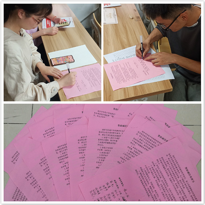 5月24日,组织受助学生签订诚信承诺书活动,共有近百名享受国家助学金及国家助学贷款的学生参加了本次活动,同学们郑重地在承诺书上签下姓名。他们纷纷表示,会时刻严格要求自己,树立诚信的个人形象,坚持诚信处事原则,端正诚信求知态度,遵循诚信信贷准则,以实际行动向社会证明自己是个知恩感恩、懂得回报的当代青年。