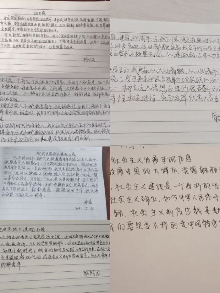 经过老师的精彩讲解,学生助理们收益颇丰。社会主义发展的道路是漫长的,如张萌萌同学所说的“只有在中国特色社会主义的伟大旗帜下,才能最大限度地团结和凝聚不同的社会阶层,不同利益群体的人们,为实现中华民族伟大复兴而共同奋斗”。革命尚未成功,正如殷香月同学所说:“中国共产党自建立以来,是一部跌宕起伏、苦难而又辉煌的历史。我们党时刻保持着先进性、与时俱进。中国经济腾飞的奇迹还在继续,中国在世界上的声音也日益响亮。新一辈们要艰苦奋斗、不骄不躁,努力奋斗!”