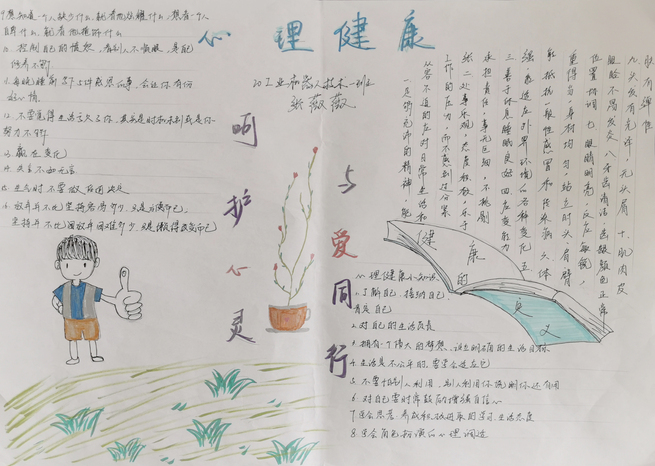 为了宣传心理学知识,扩大学生视野,使学生走近心理,了解心理健康知识。近日,应用工程学院组织开展了“健康成长,拥抱未来”手抄报比赛。