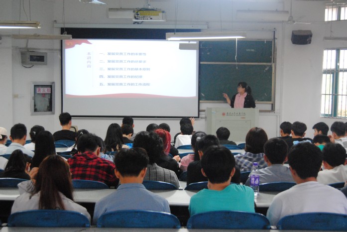 刘婷婷从发展党员工作的重要性、发展党员工作的总要求、发展党员工作的基本原则、发展党员工作的纪律、发展党员工作的工作流程几个方面,强调发展党员是基层党建的经常性、基础性工作,要做到成熟一个、发展一个。她向学员们传达了有关中组部最新的发展党员工作要求,详细讲解了发展党员的基本流程和发展党员的标准,指出了青年学子如何才能成为一名合格的党员。