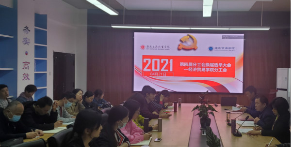 根据学校党委和工会有关通知文件精神,2021年4月21日经济贸易学院分工会在五楼会议室召开了全体会员大会,民主选举第四届教代会、工代会代表和分工会委员。学院分工会负责人、党总支常务副书记沈飞主持了会议。