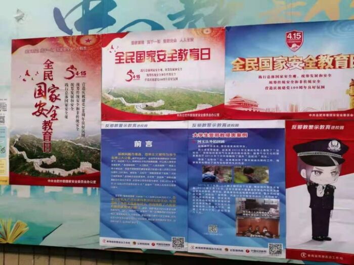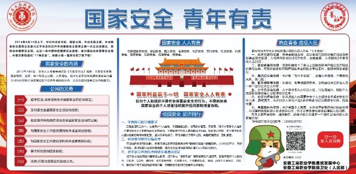 本次活动包括“国家安全”、“校园安全”、“青年有责”三个专场,采用线上推广和线下互动相结合的方式。易班平台在线上发布活动通知,“国家安全”专场,设立4.15主题展报,邀请辖区双凤、杏林派出所进校宣传、答疑,引导学生牢固树立国家安全意识,提升维护国家安全的能力。“校园安全”专场,张贴发放防诈骗、反邪教宣传单,呼吁学生牢固树立防诈骗、反邪教意识,积极参与防诈识骗反邪教的宣传。“5.4青年有责”专场,保卫处(人武部)老师现场宣传大学生征兵相关政策法规,为毕业生解答在庐阳区应征入伍的“七大优势”等。